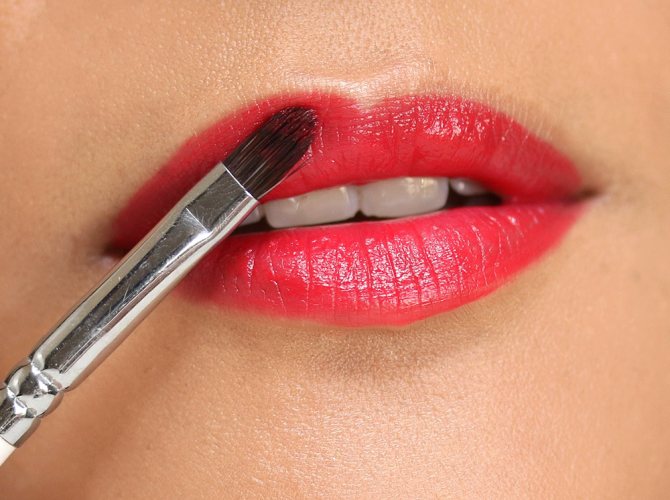 - И уже затем смело наносите помаду. Лучше в один, максимум в два слоя, иначе эффекта затемнения вы не получите.