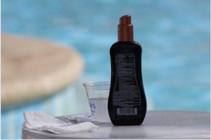 - масло — подходит в основном для смуглых людей. Способствует быстрому приобретению ровного загара. Отлично питает и увлажняет. Лучше переносит водные процедуры, но считается менее эффективным, чем крем. Не рекомендуется использовать обладателям жирной и проблемной кожи.