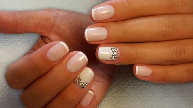 Французский маникюр на свадьбу со стразами